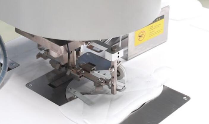 1、手動(dòng)擺片,設(shè)備自動(dòng)對(duì)耳帶進(jìn)行焊接以及裁斷。