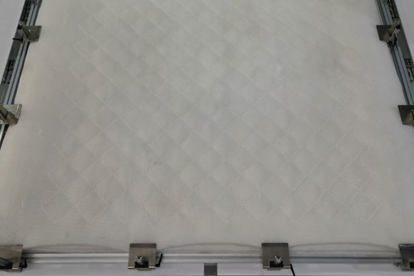 5、輔料提前裝夾在絎縫框上,更換輔料時隨框一起更換。