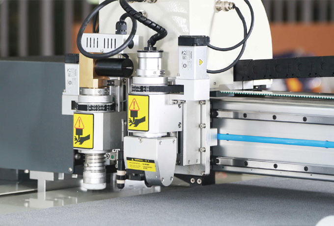4、兩個相機(jī)對材料進(jìn)行拍照后由智能軟件運(yùn)算處理,兩個切割頭同時完成切割任務(wù)。