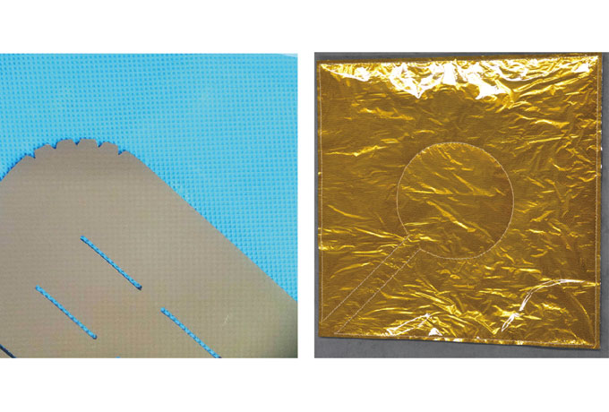 6、送料系統(tǒng)進(jìn)行恒張力送料,并兼容自動附膜功能,確保材料真空吸附固定;收料系統(tǒng)可以將切割后的裁片收集起來,廢料自動分離并卷起。