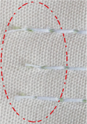 開啟密縫功能,使剪線前加一針密縫(或加多針密縫),
