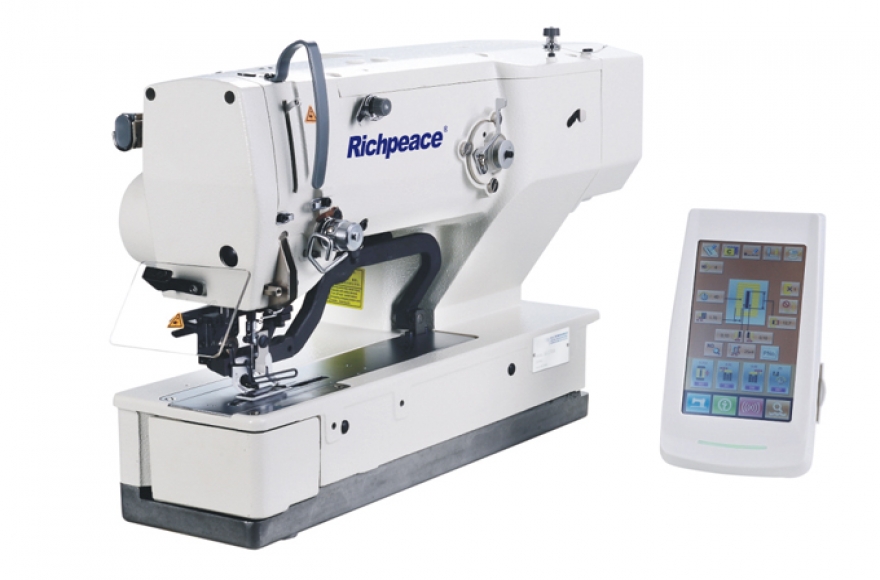 普通型電腦縫紉機,配置有一個小型的電腦操作屏,可以進如針步大小,針數預設等一系列設定,使用柔性面料的縫紉工作強度減小。在生產場地有限的預算下,可以適當考慮在生產方案中配置多臺電腦縫紉,用以提升整個生產線的生產效率。