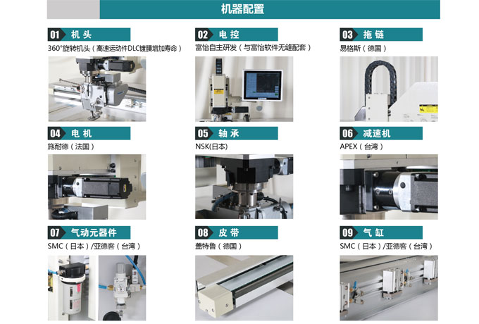 4、 進口伺服電機驅動,高精度直線導軌傳動 ,確?;用烙^,高品質縫制效果;