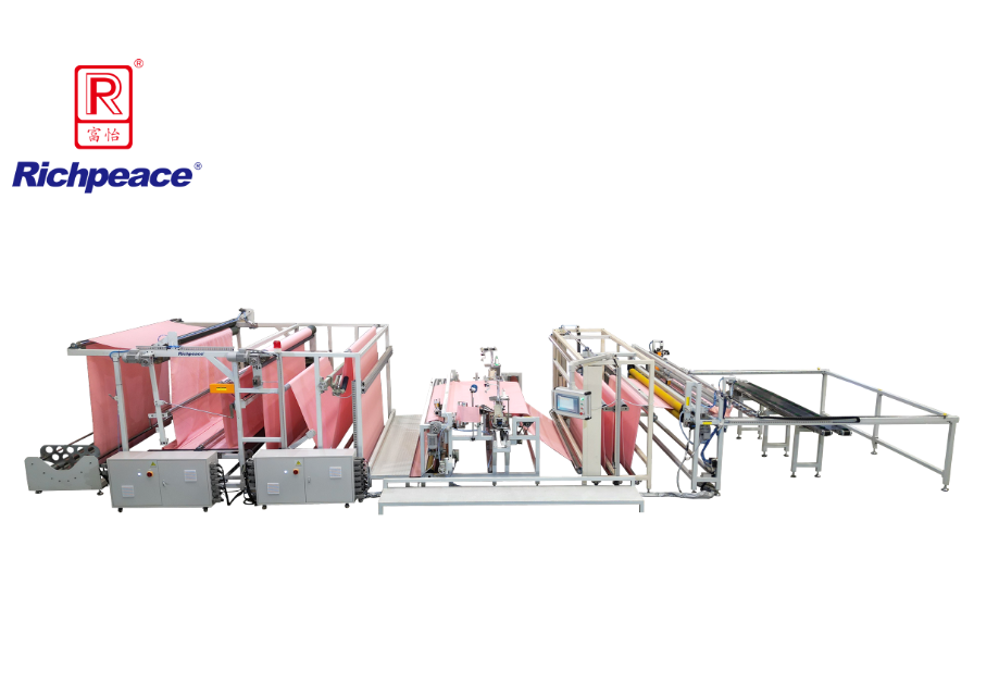 自動卷邊的橫縫機構及出料機構組成的自動床單一體機。