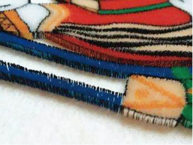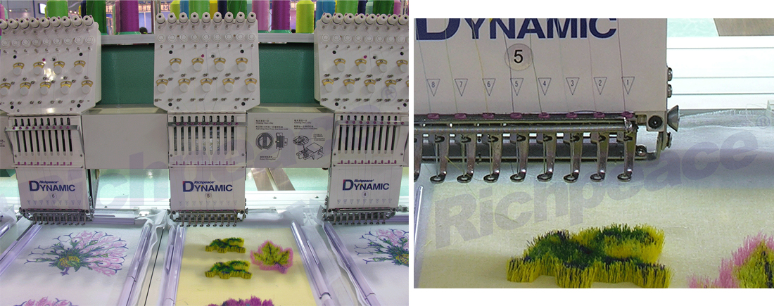 3、根據花版要求,預留不同的切線長度,創造出立體三維造型,繡線根根直挺,圖案清晰凸顯。