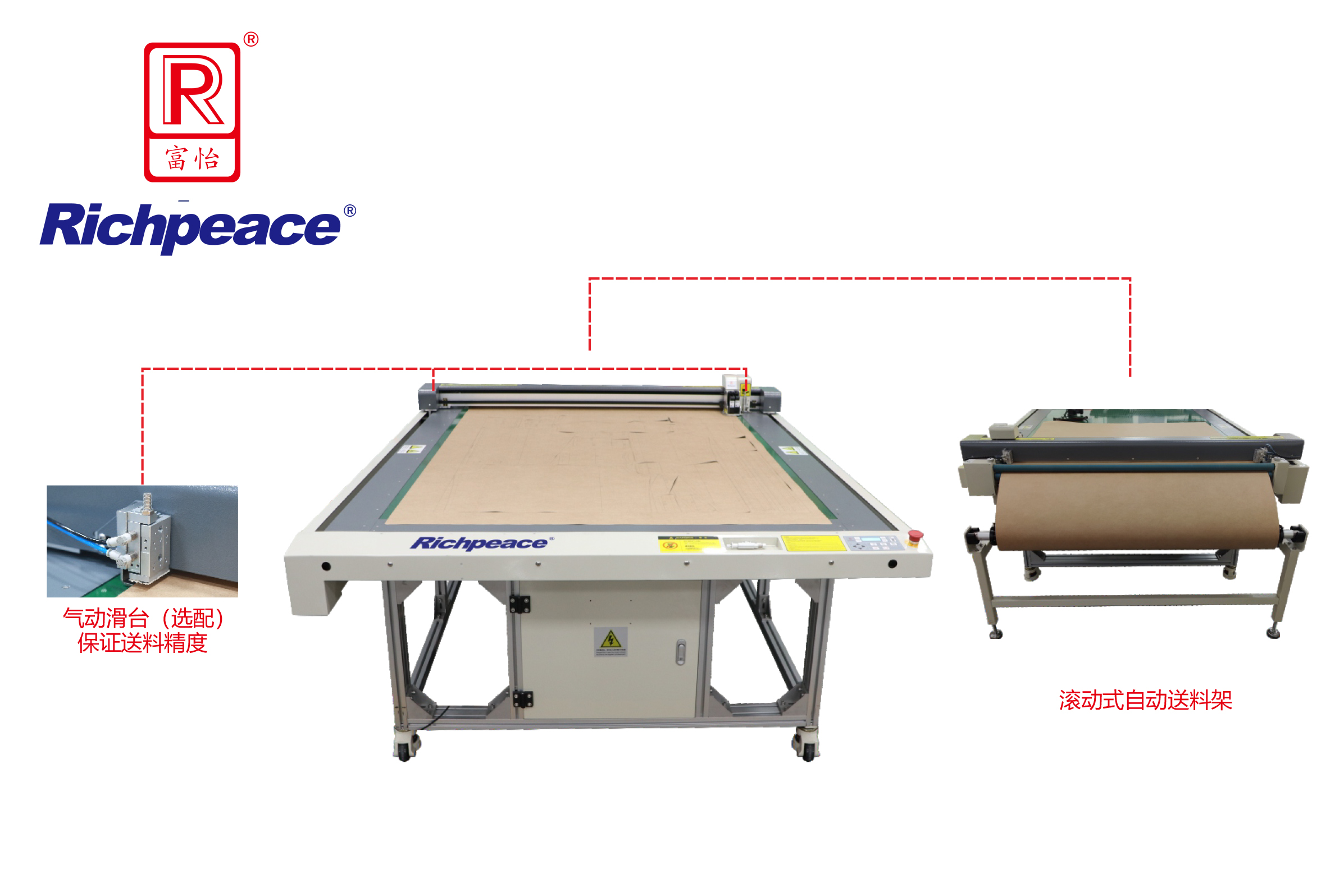 9、采用氣動滑臺夾取材料,保證送料精準度,實現(xiàn)超長圖形的 打印和切割(選配)。